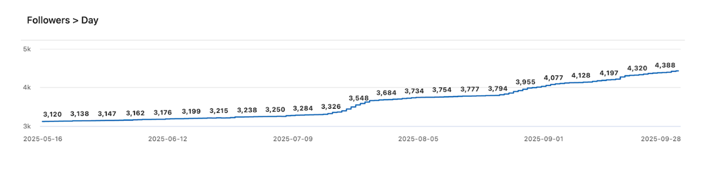10% increase in total followers
